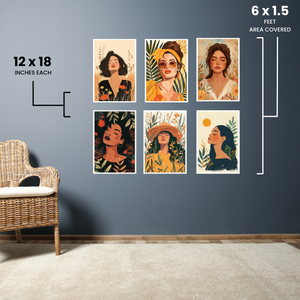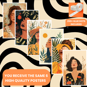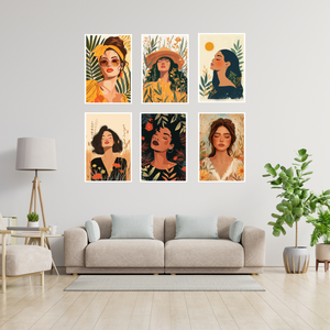 Bring elegance and calm to your walls with the Boho Girls Pack of 6 Posters, featuring graceful illustrations of women in soft, earthy tones and minimalistic bohemian style.