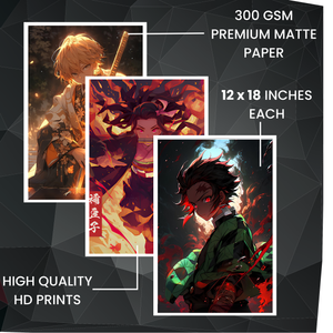 🔸 Set of 6 Bold Posters – Featuring Tanjiro, Nezuko, Zenitsu, Inosuke & more