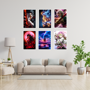 🔸 Set of 6 Bold Posters – Featuring Tanjiro, Nezuko, Zenitsu, Inosuke & more