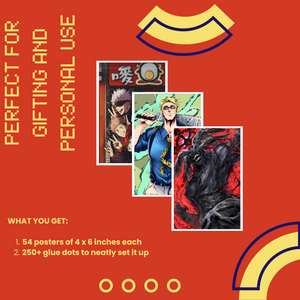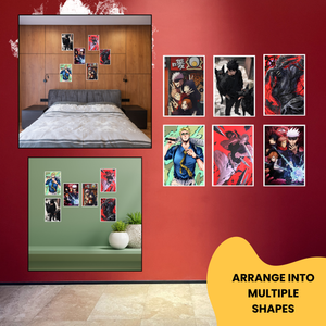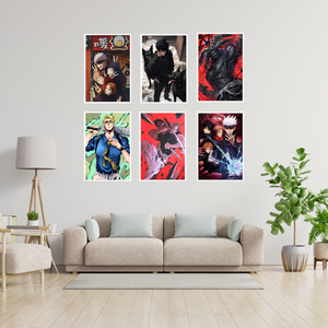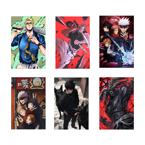 🔹 Set of 6 High-Impact Posters – Featuring Gojo, Yuji, Megumi, Nobara & more