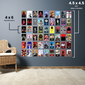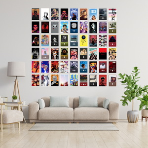 Bring your favorite tunes to life with this pack of 54 music album and artist posters, featuring iconic covers and portraits in a compact 4x6 inch size. Perfect for creating aesthetic collages, mood boards, or decorating your room, studio, or music corner with legendary vibes.