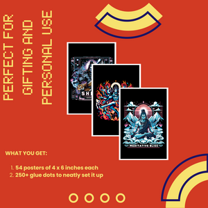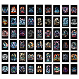 Invite divine power and spiritual depth into your space with this pack of 54 Lord Shiva posters, featuring powerful depictions, meditative art, and symbolic visuals in a compact 4x6 inch size. Perfect for pooja rooms, meditation corners, bedrooms, or creating devotional collages and mood boards.