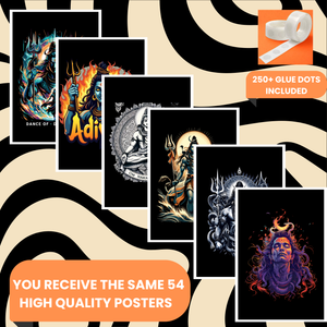 πΉ Includes 54 Posters β Featuring Mahadev, Shiva in meditation, Tandav poses, Shivling, Trishul, and abstract Shiva art